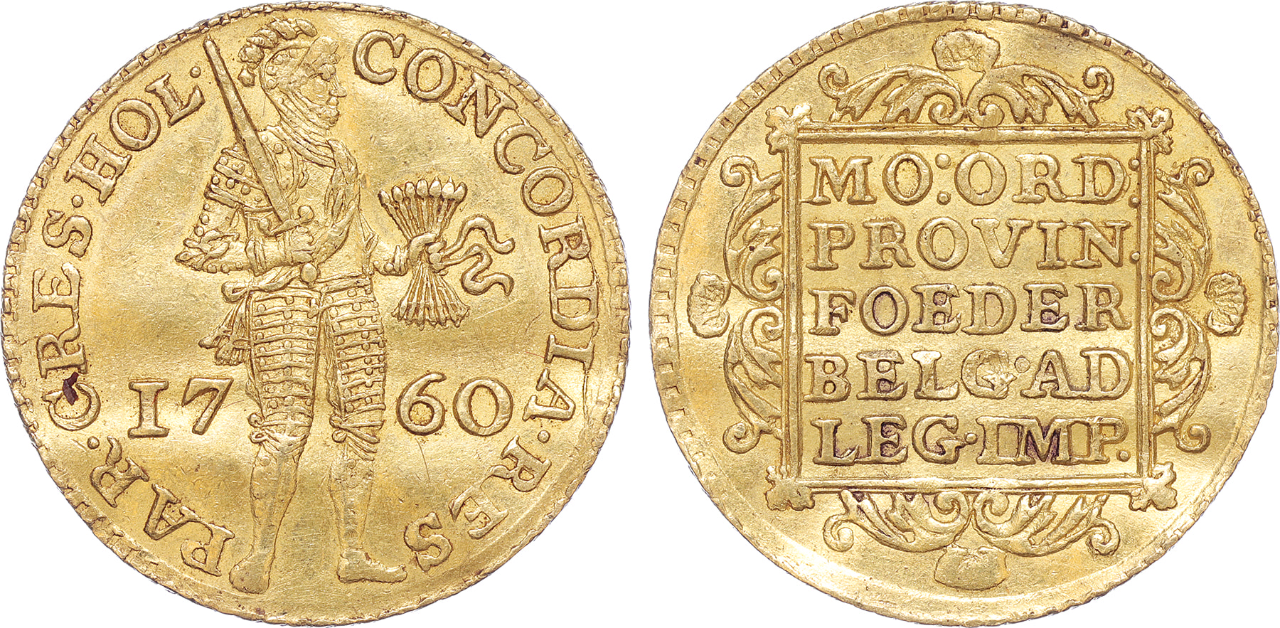 Holland. Gouden dukaat 1760. Cnm. 2.28.54; D. 775. Zeer fraai+.