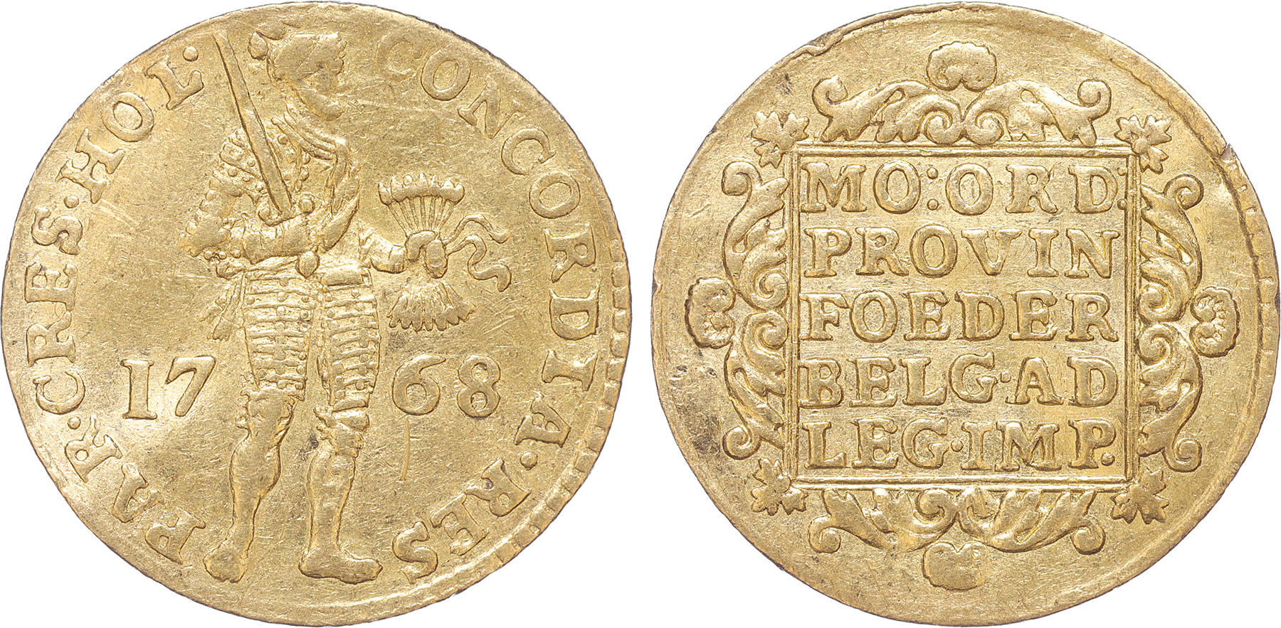 Holland. Gouden dukaat 1768. Cnm. 2.28.54; D. 775. Zeer fraai.