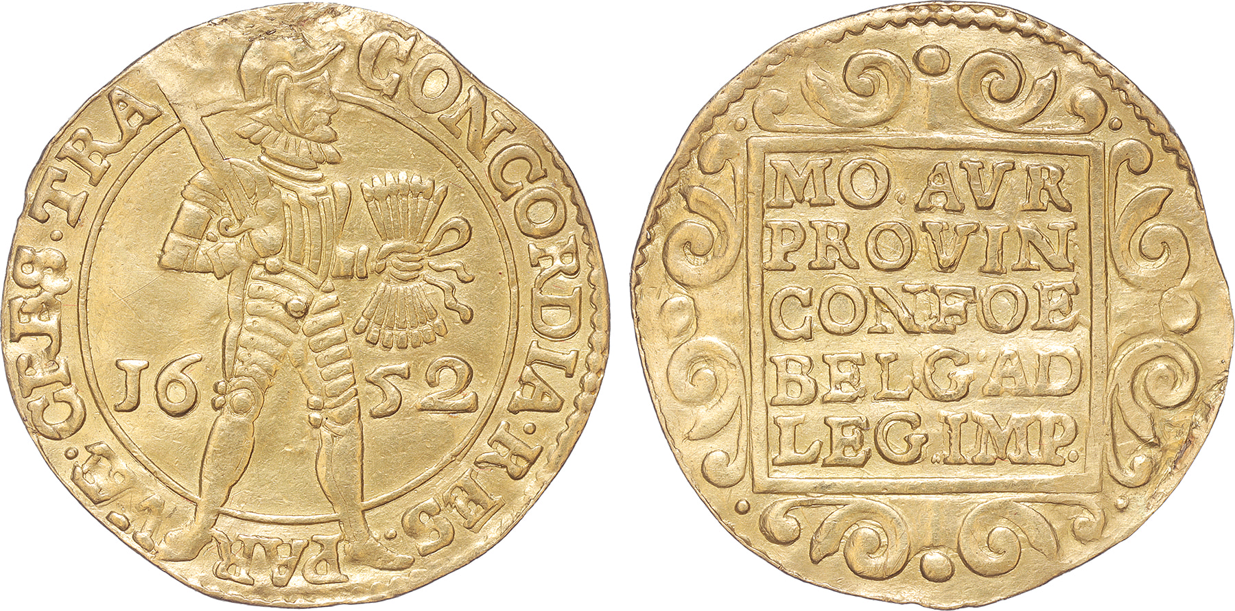 Utrecht. Dubbele gouden dukaat 1652. Cnm. 2.43.40; D. 961. Zeer fraai. RRR. (Ex. Schulman veiling 287/197)