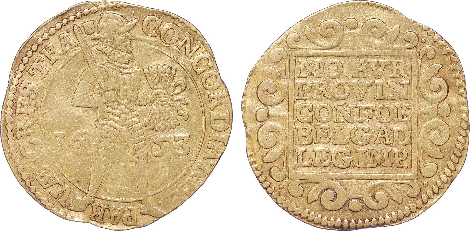 Utrecht. Dubbele gouden dukaat 1653. Cnm. 2.43.40; D. 961. Zeer fraai-. (Ex. L. Schulman veiling 13/359)