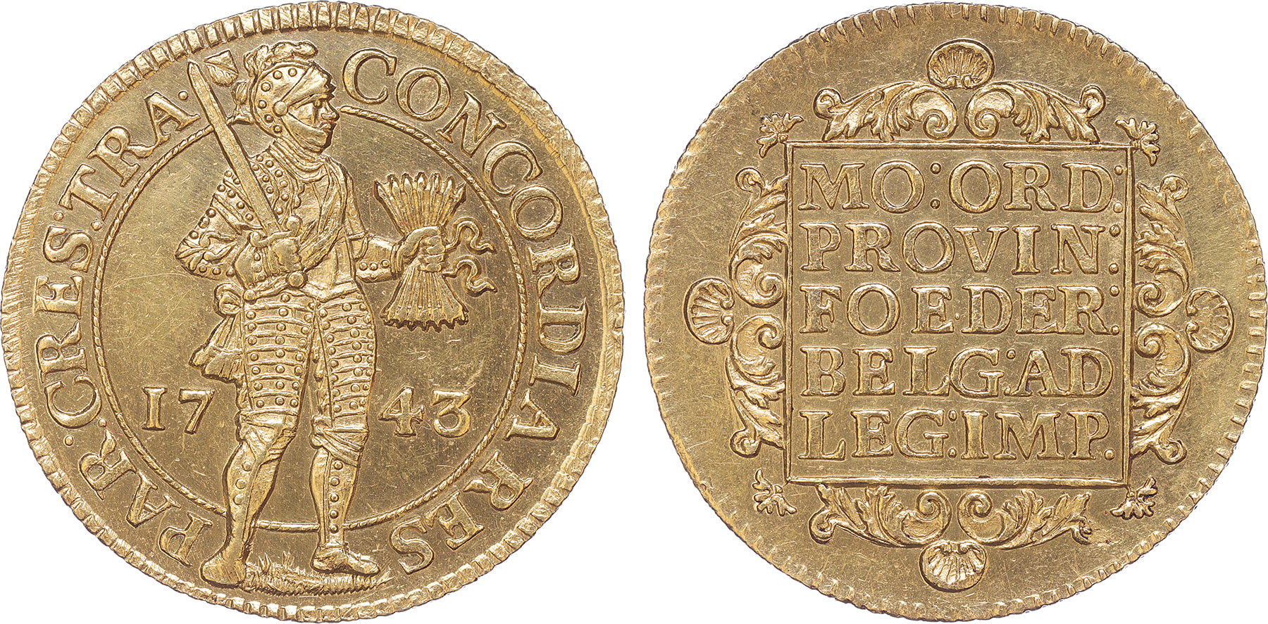 Utrecht. Dubbele gouden dukaat 1743. Cnm. 2.43.41; D. 962. Prachtig.