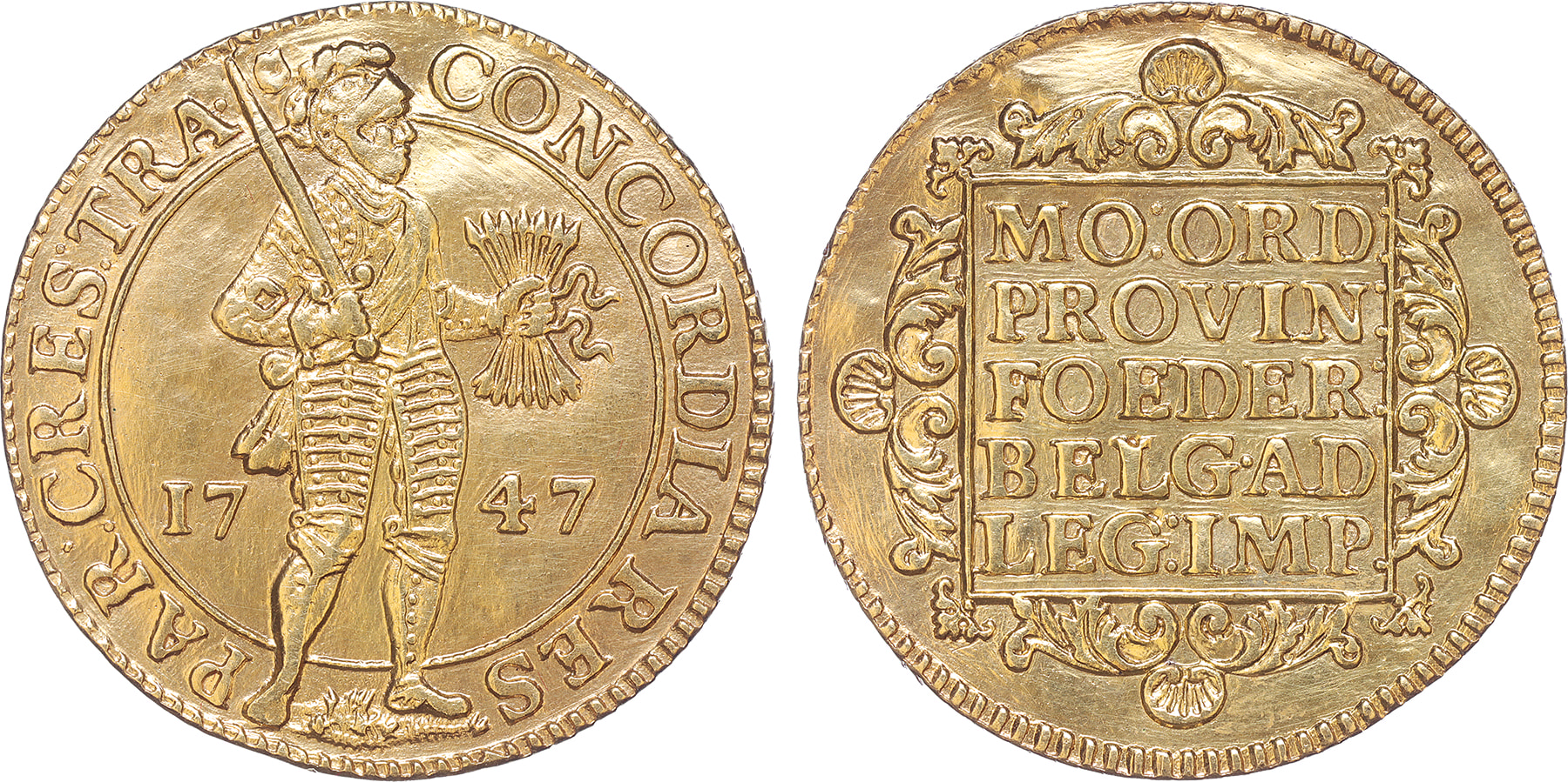 Utrecht. Dubbele gouden dukaat 1747. Cnm. 2.43.41; D. 962. Zeer fraai+.