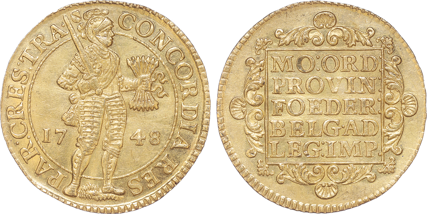 Utrecht. Dubbele gouden dukaat 1748. Cnm. 2.43.41; D. 962. Prachtig.