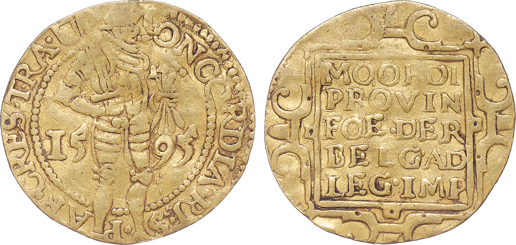 Utrecht. Gouden dukaat 1595/93. Cnm. 2.43.42; D. 963. Fraai+.
