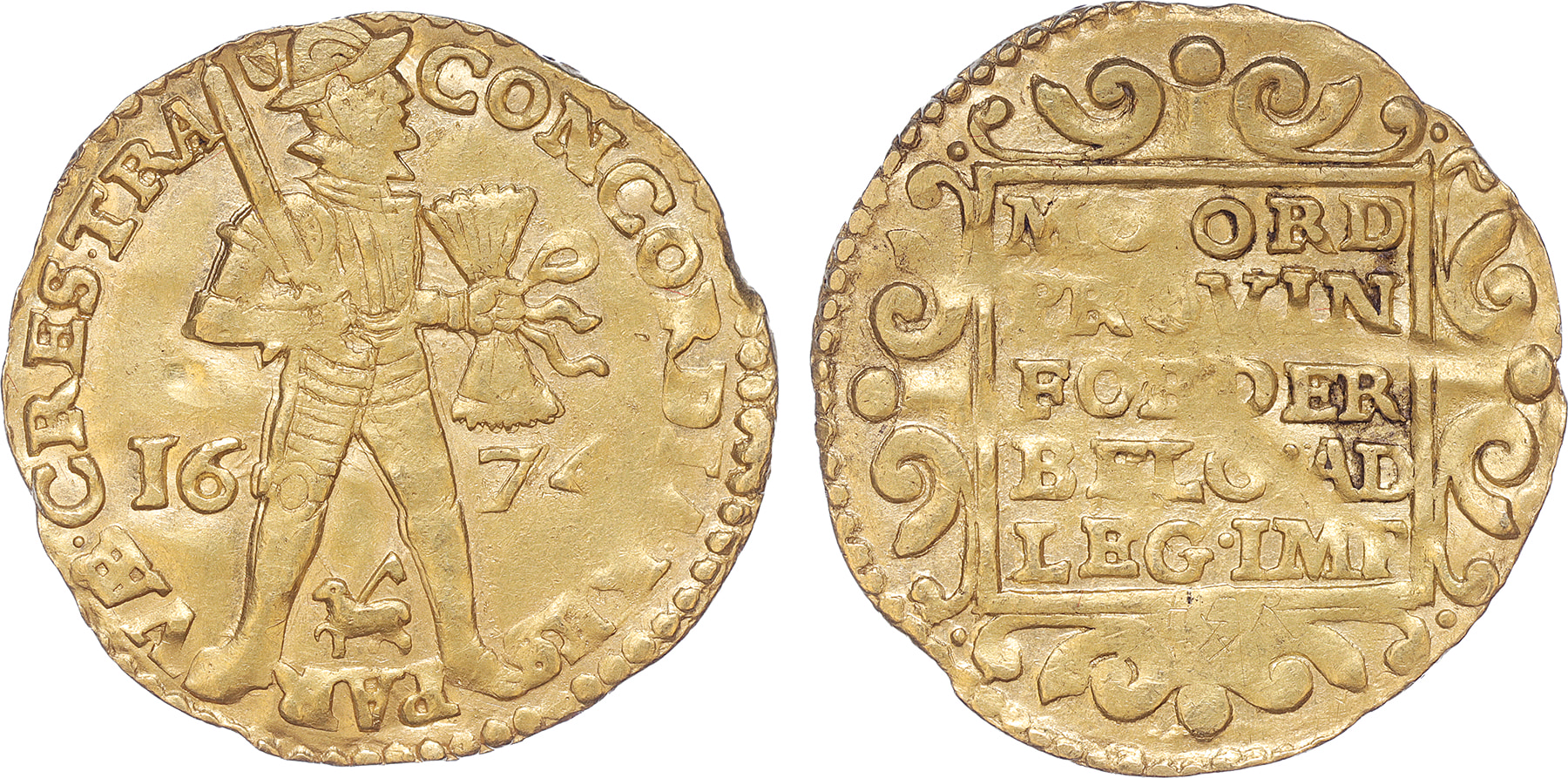 Utrecht. Gouden dukaat 1674. Cnm. 2.43.44; D. 963. Zeer fraai.