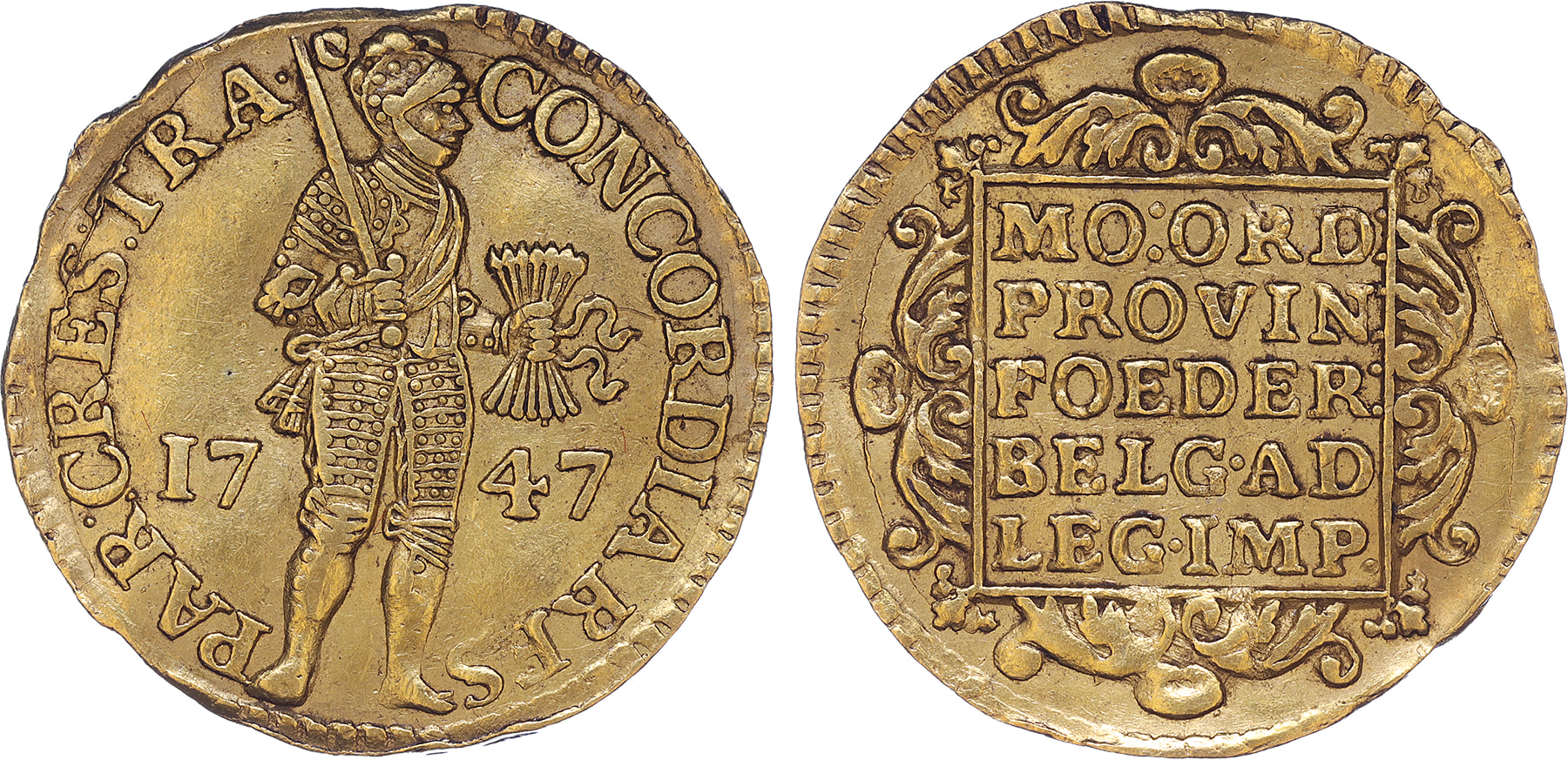 Utrecht. Gouden dukaat 1747. Cnm. 2.43.46; D. 965. Zeer fraai.