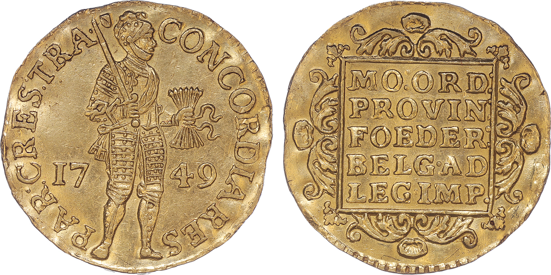 Utrecht. Gouden dukaat 1749. Cnm. 2.43.46; D. 965. Zeer fraai/prachtig.
