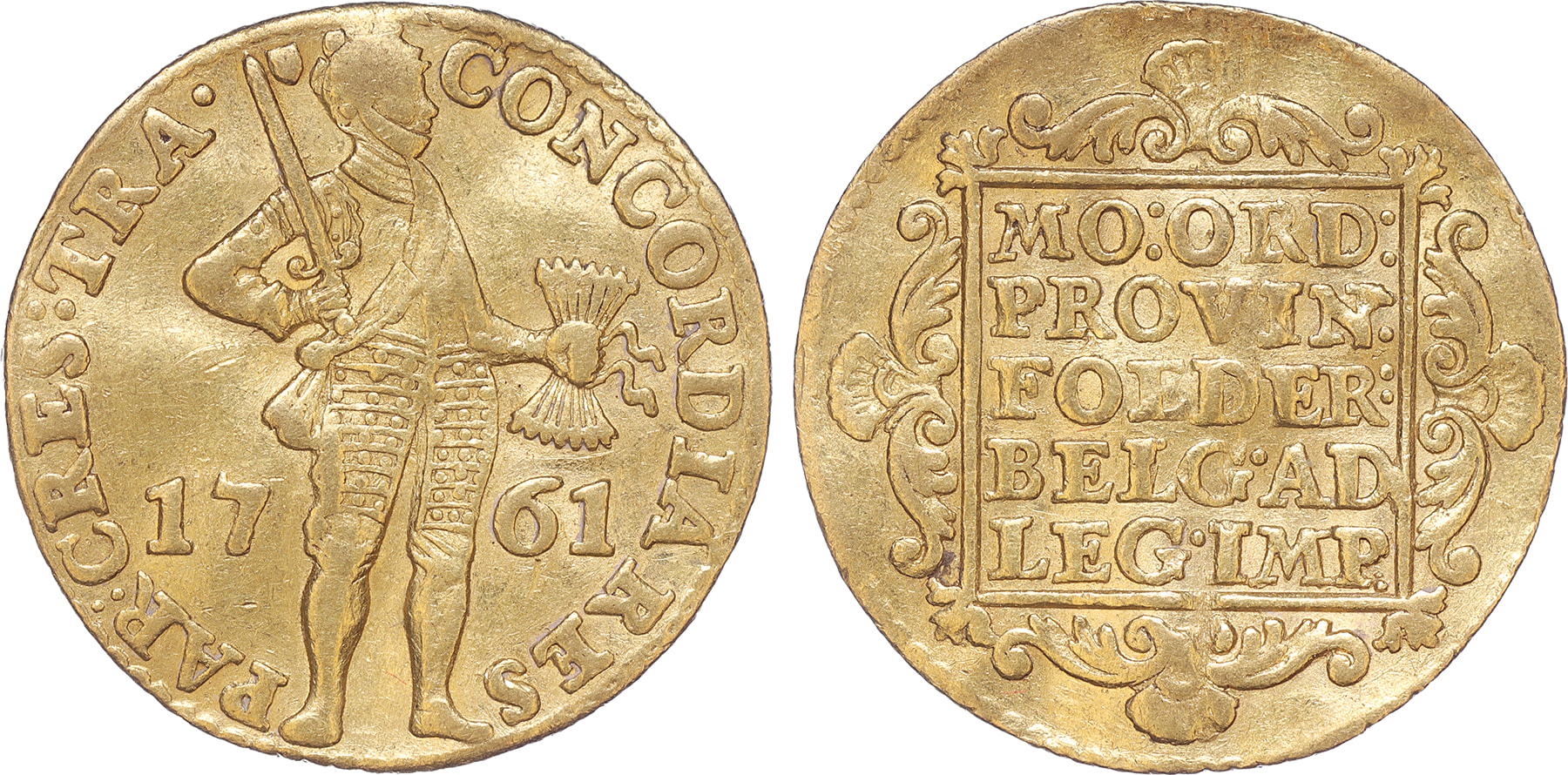 Utrecht. Gouden dukaat 1761. Cnm. 2.43.46; D. 965. Zeer fraai-.