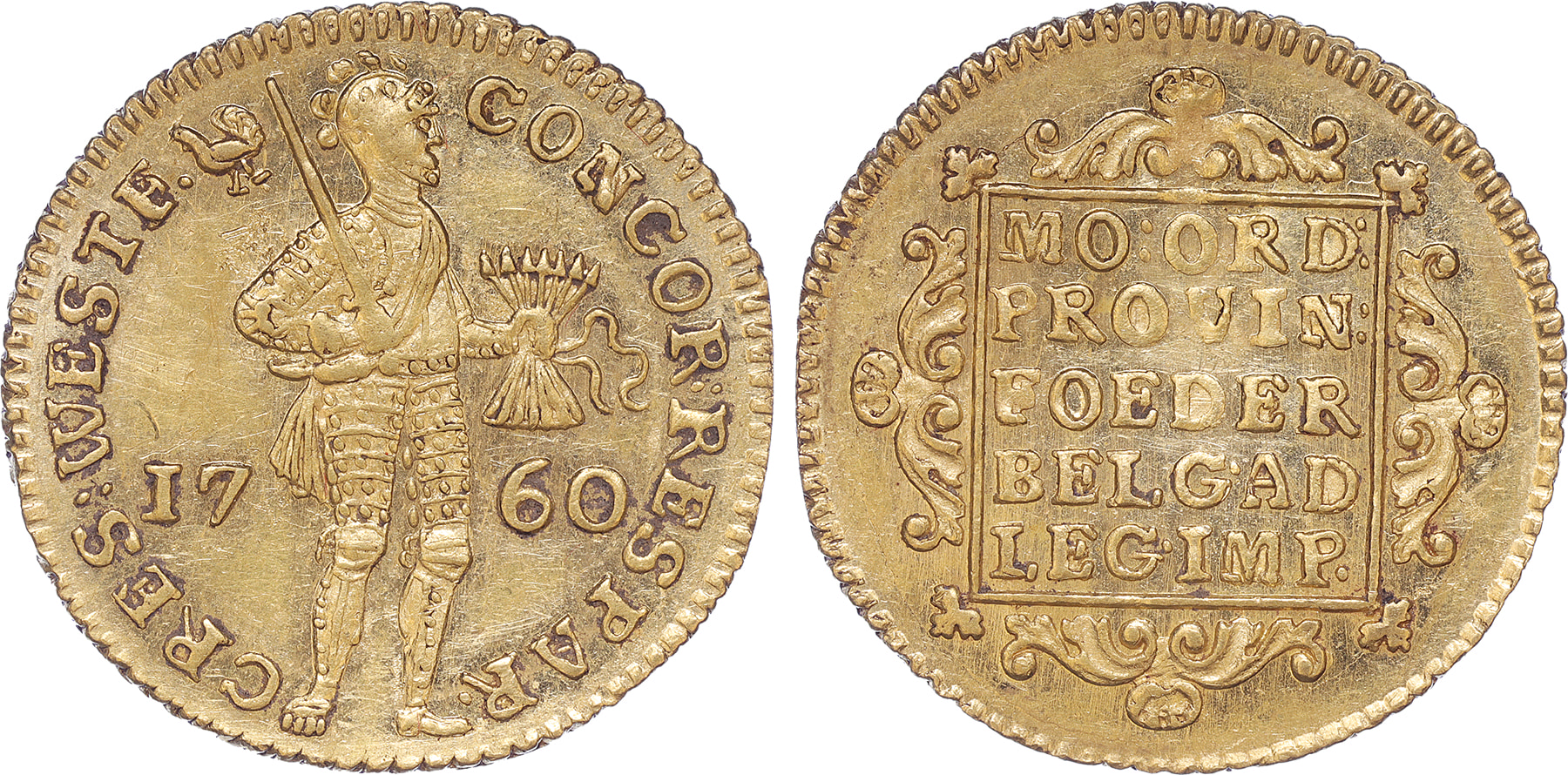 West-friesland. Gouden dukaat 1760. Cnm. 2.46.16; D. 838. Zeer fraai/prachtig.