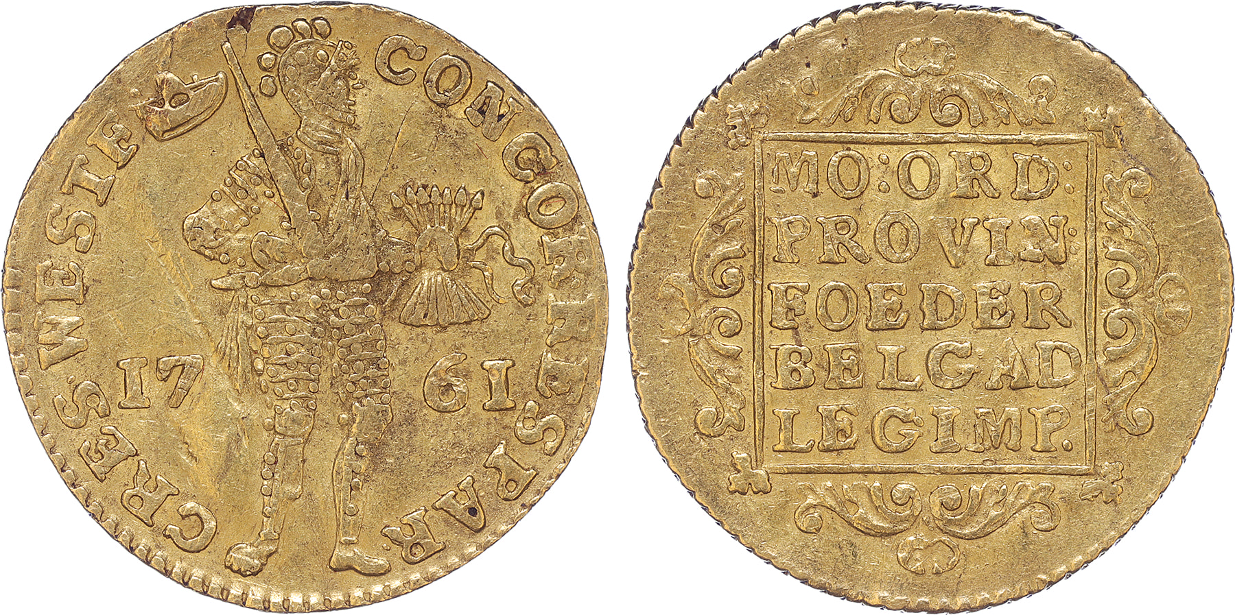 West-friesland. Gouden dukaat 1761. Cnm. 2.46.16; D. 838. Fraai.