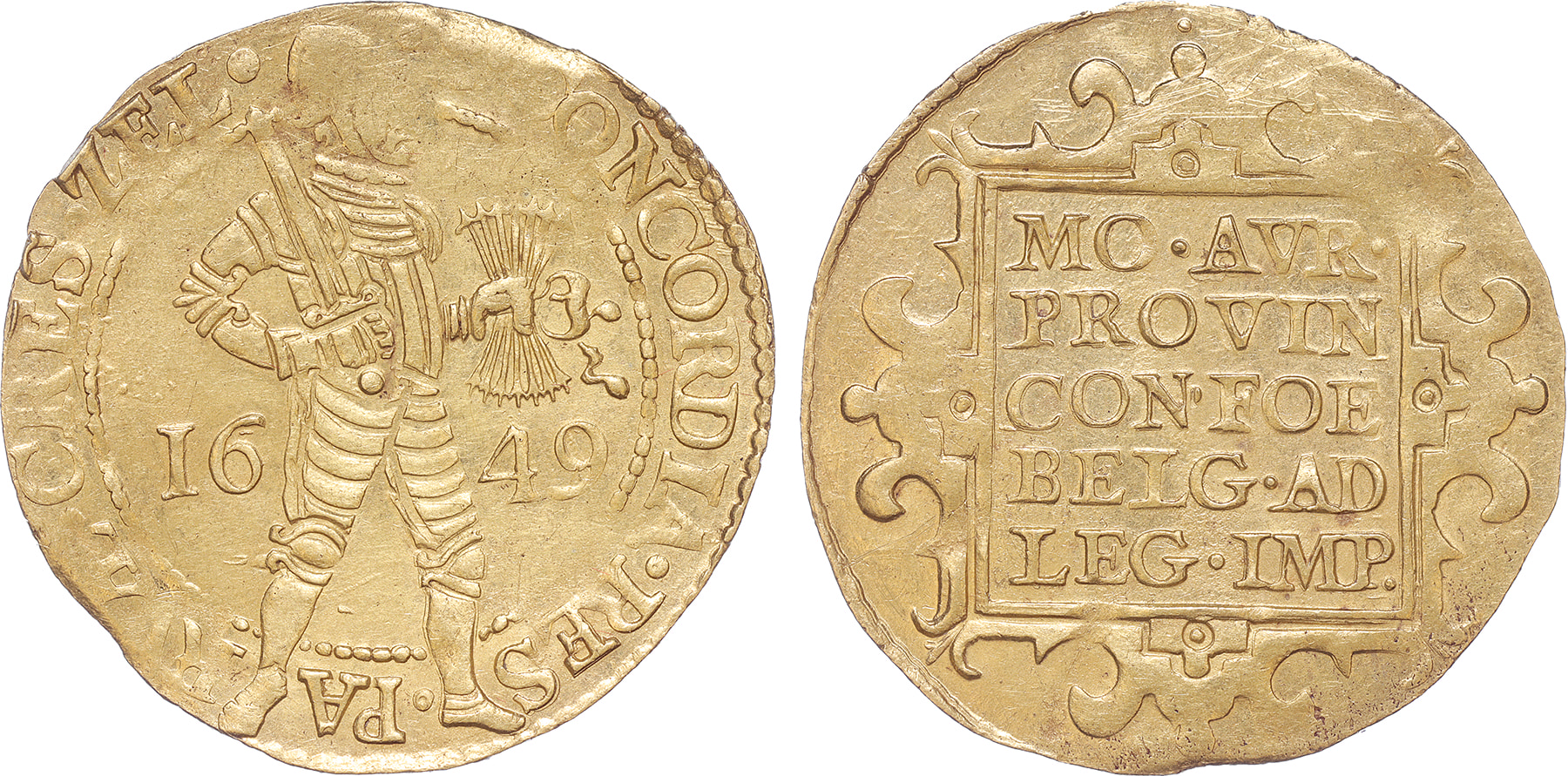 Zeeland. Dubbele gouden dukaat 1649. Cnm. 2.49.23; D. 881. Zeer fraai.