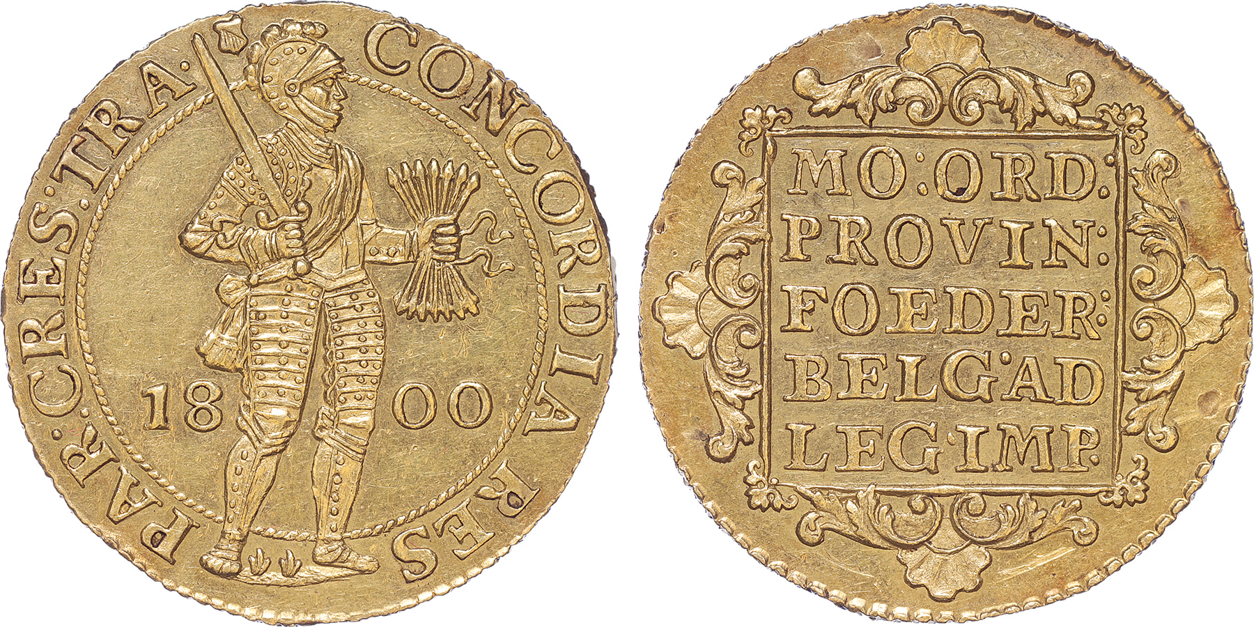 Utrecht. Dubbele gouden dukaat 1800. Sch.7. Prachtig-. RR. Miniem randtikje. Overigens zeldzaam stuk!
