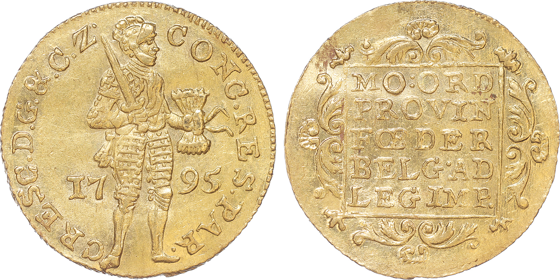 Gelderland. Gouden dukaat 1795. Sch.14. Zeer fraai. RR. (Ex. Lanz veiling 43/934)