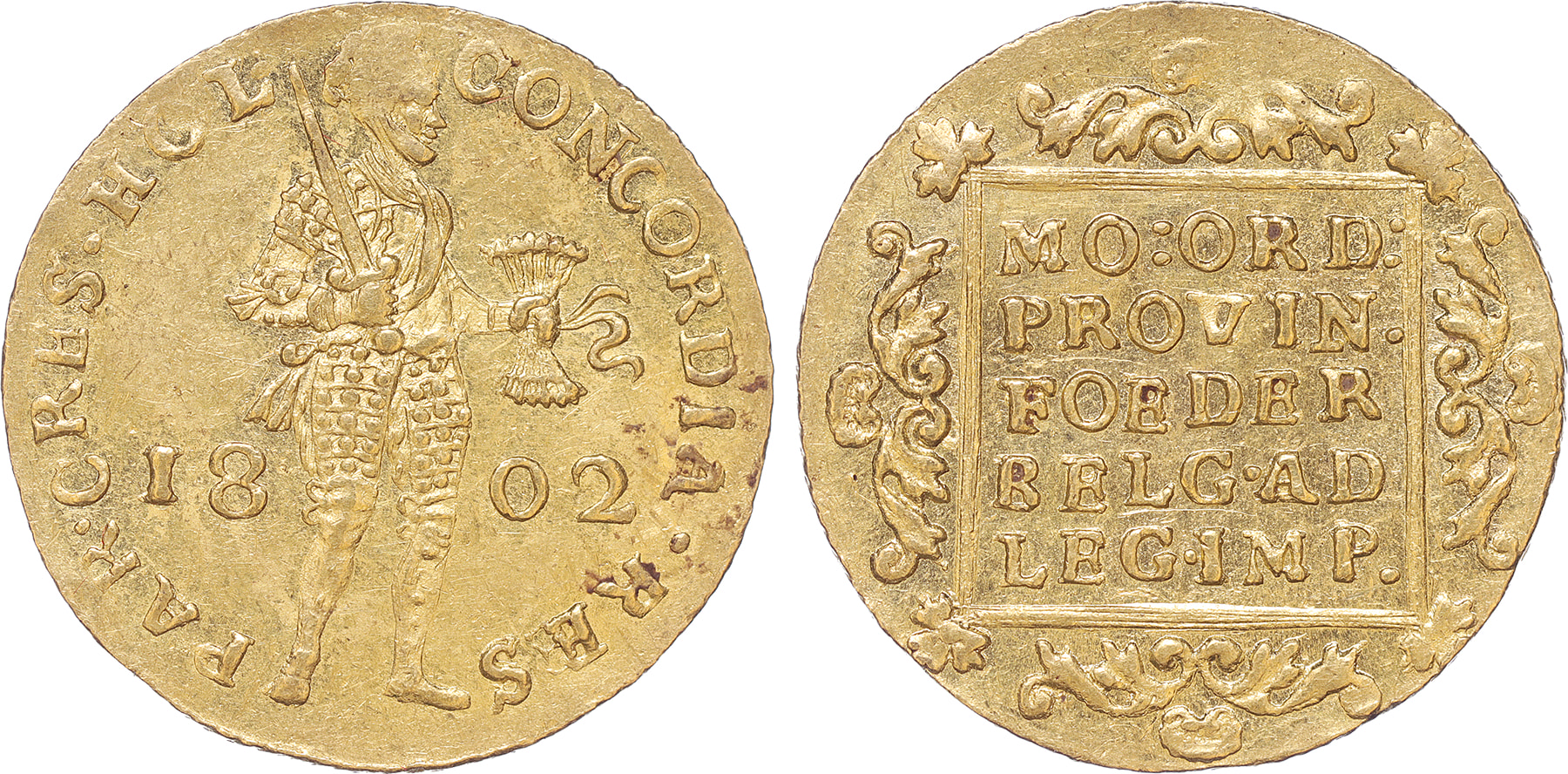 Holland. Gouden dukaat 1802. Sch.26. Prachtig.