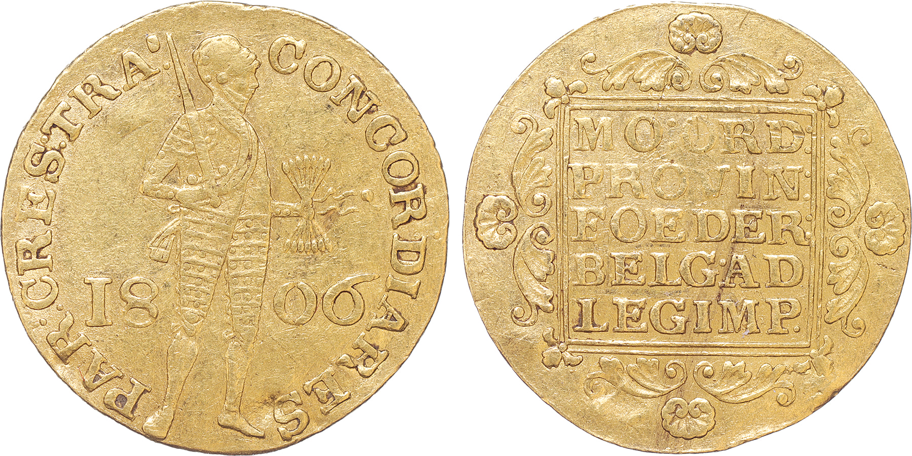 Utrecht. Gouden dukaat 1806. Sch.118a. Zeer fraai. Met grote cijfers, Russische slag.