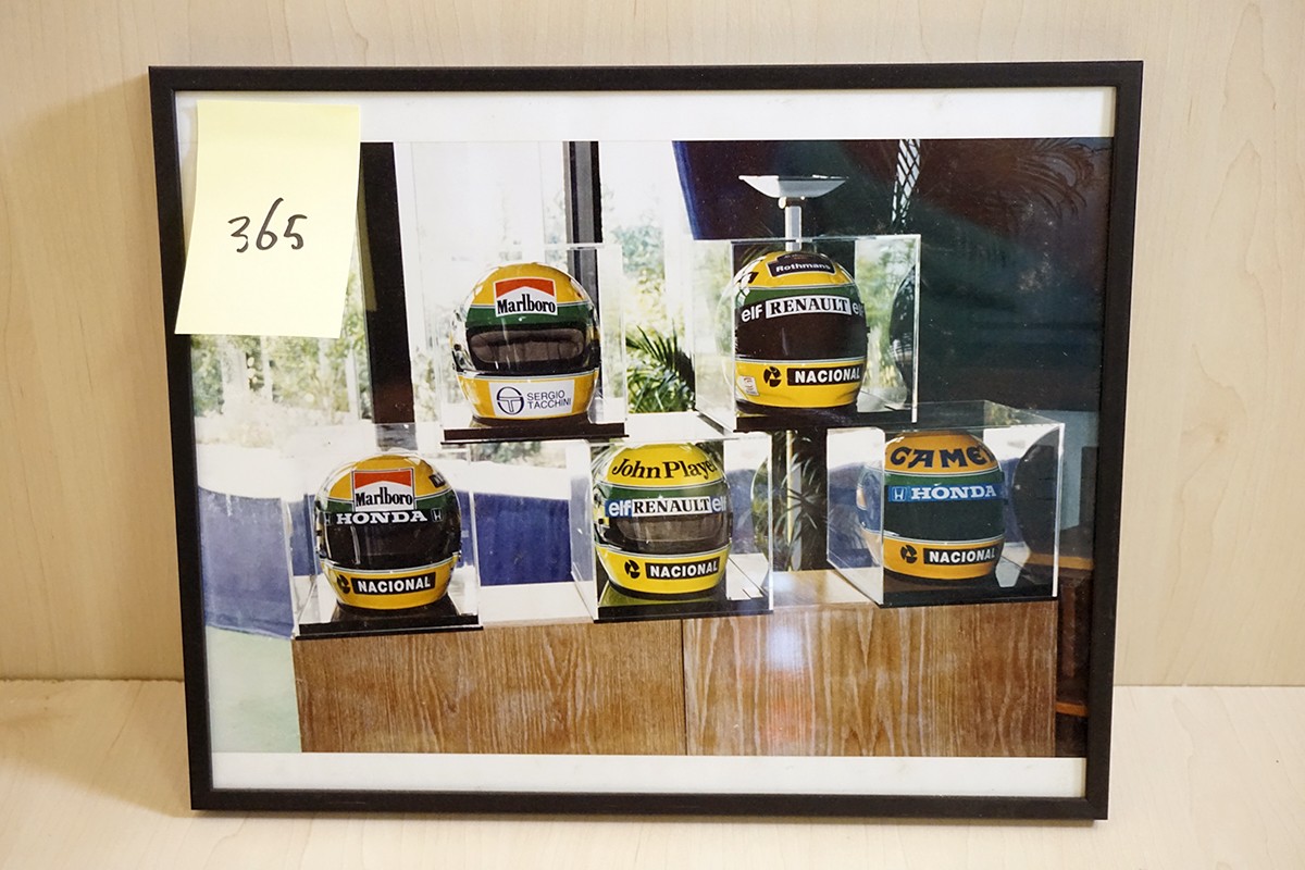 Ayrton Senna: ingelijste foto verschillende originele Senna helmen - Aantal: 1