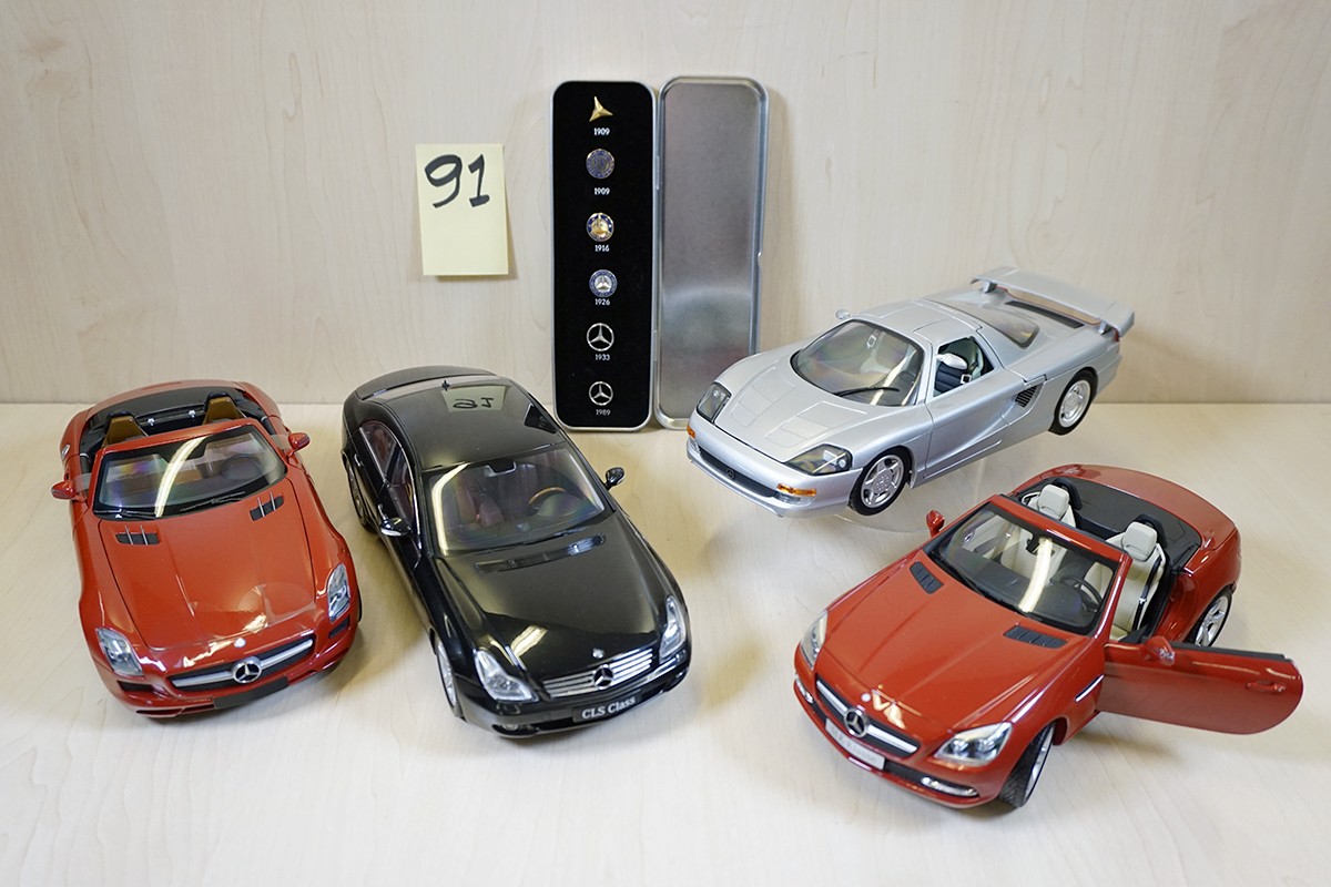 Mercedes modellen, inclusief set historische speldjes - Aantal: 4