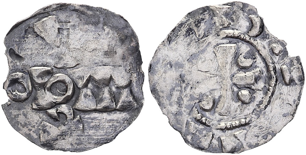 ½ Keulse penning z.j. Imitatie, waarschijnlijk te Tiel geslagen. Grondvondst 1996. Rand hier en daar uitgebroken. Circa fraai.