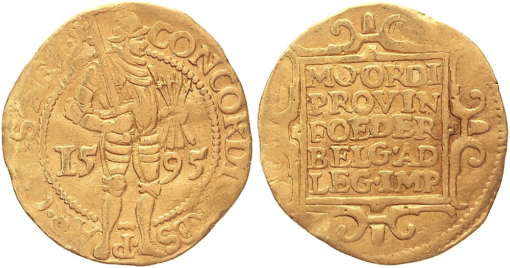 Dukaat 1595. Delm 883; CNM 2.49.25; HPM 20 [3,145 gram]. Vrijwel zeer fraai.