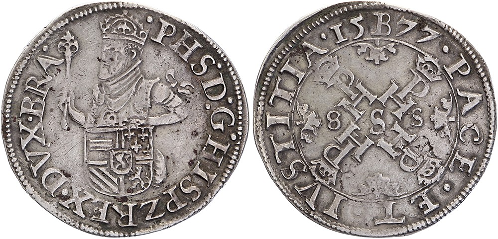 ¼ Statendaalder 1577, Brussel. GH 247-3b; Delm. 129. Scepter met lelie. Zeer fraai.