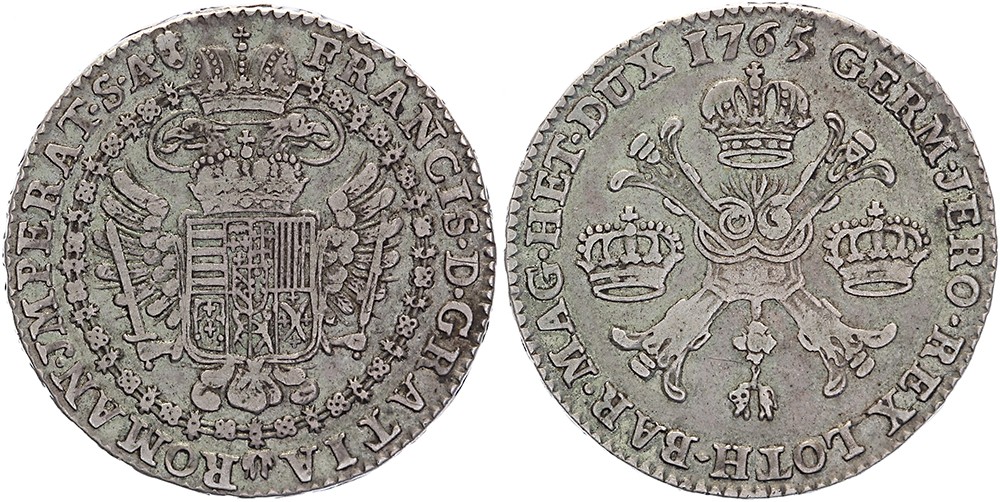 ½ Kronentaler 1765 Brussel. Delm. 386; KM 20. Op naam van Frans I. Bijna zeer fraai.