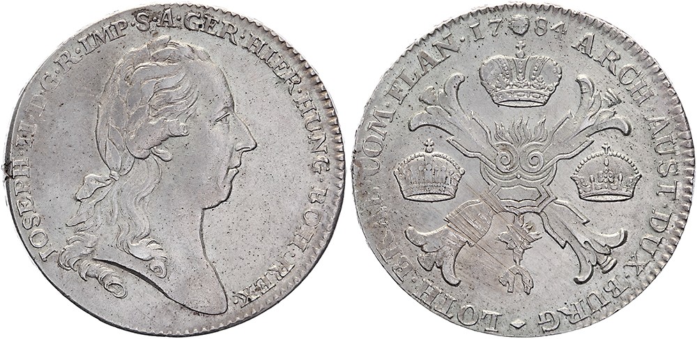 Kronentaler 1784 Brussel. Dav. 1284; Delm. 393; KM 32. Justeersporen kz. Zeer fraai.