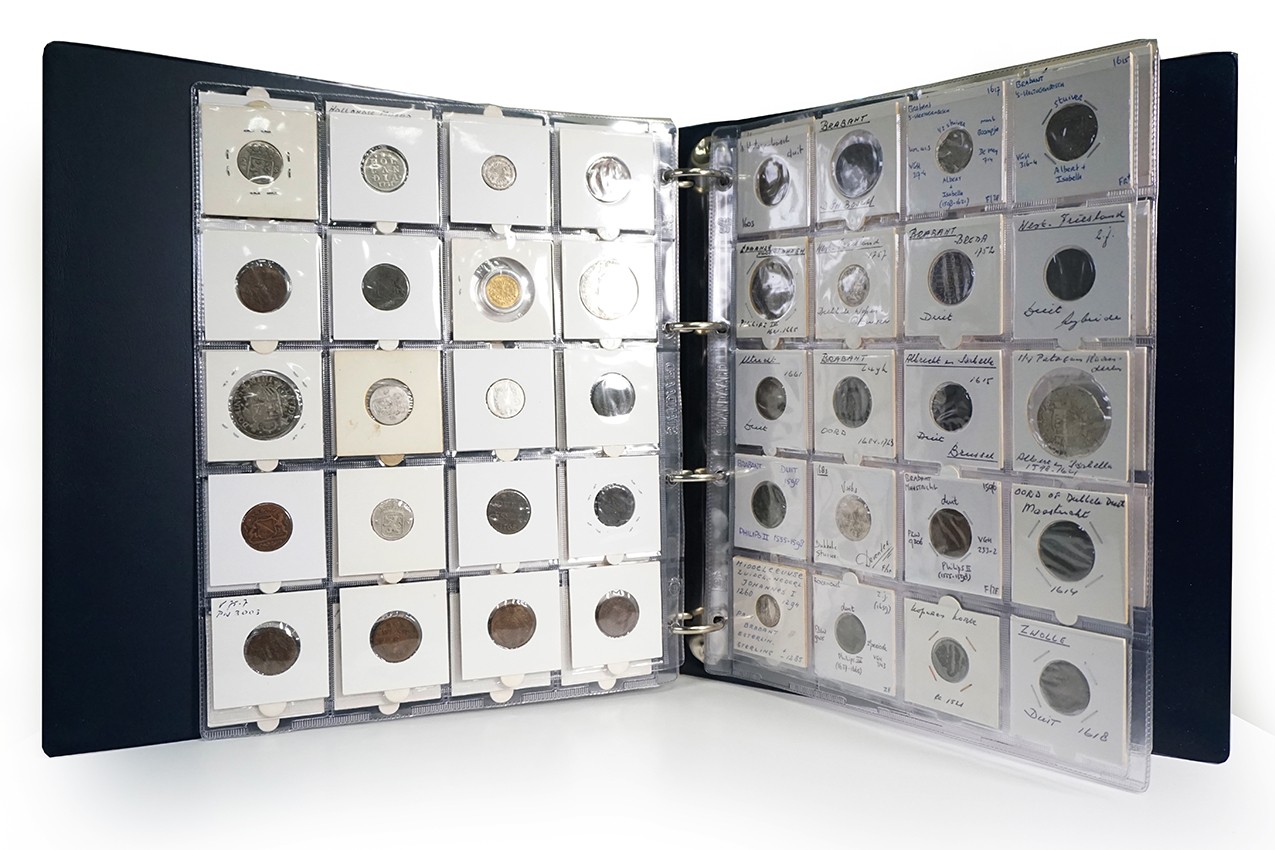 Blauw album met ruim 85 stuks vnl. leuk provinciaal zowel Noordelijk als Zuidelijk! Onder andere gouden afslag bezemstuiver 1743 Holland.