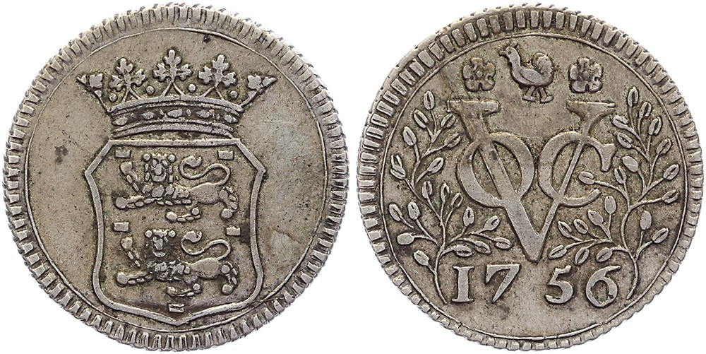 West-Friesland. Duit 1756, afslag in zilver van 3,93 gram. Scholten 262a. Zeer fraai.