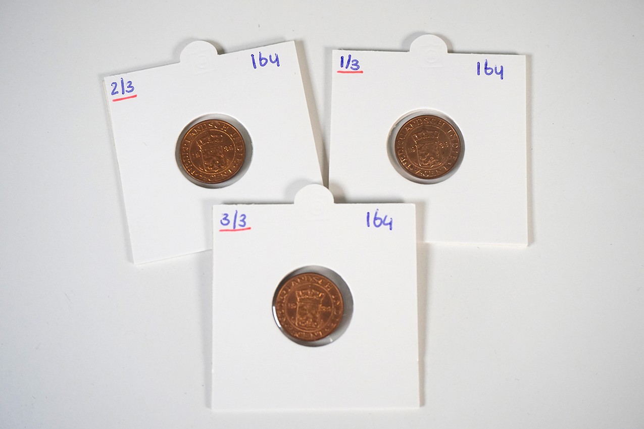 Lot (3) ½ Cent 1939 mmt. druiventros. Scholten 909. Originele kleur. FDC.