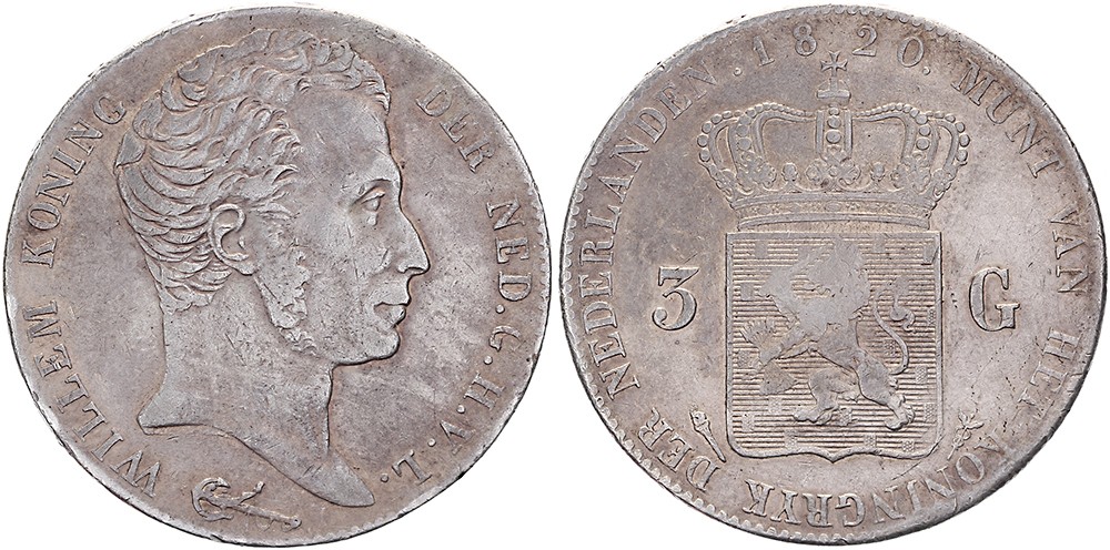 3 Gulden 1820 Utrecht mmt. fakkel Sch. 242 Fraai / zeer fraai