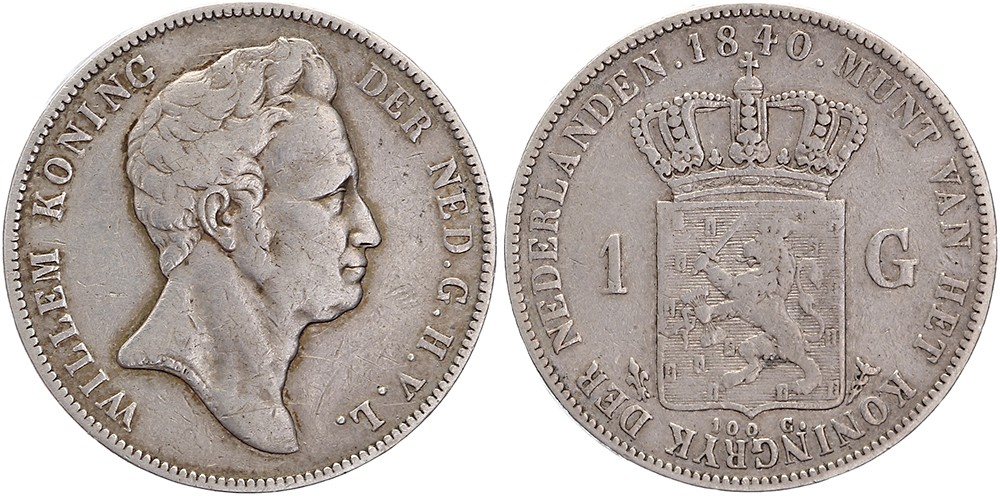 1 Gulden 1840 mmt. lelie Sch. 278 Bijna zeer fraai