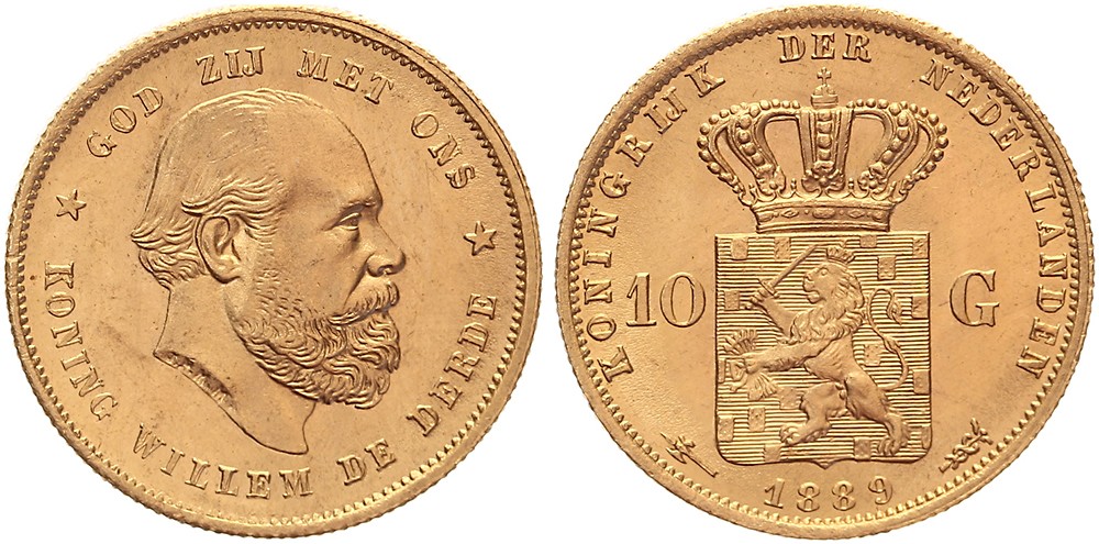 10 Gulden 1889 mmt. hellebaard Sch. 558 Prachtig