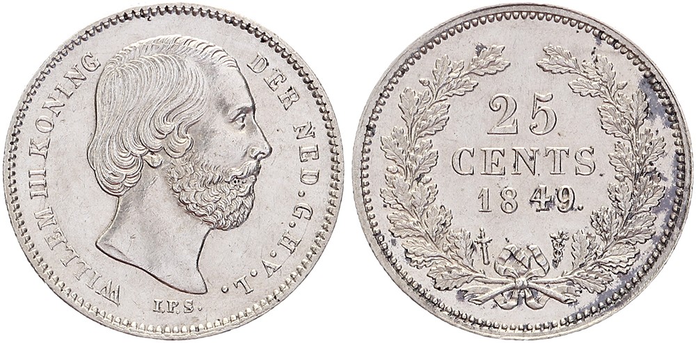 25 Cents 1849 mmt. zwaard Sch. 634. Lichte patinavlekjes Vrijwel FDC