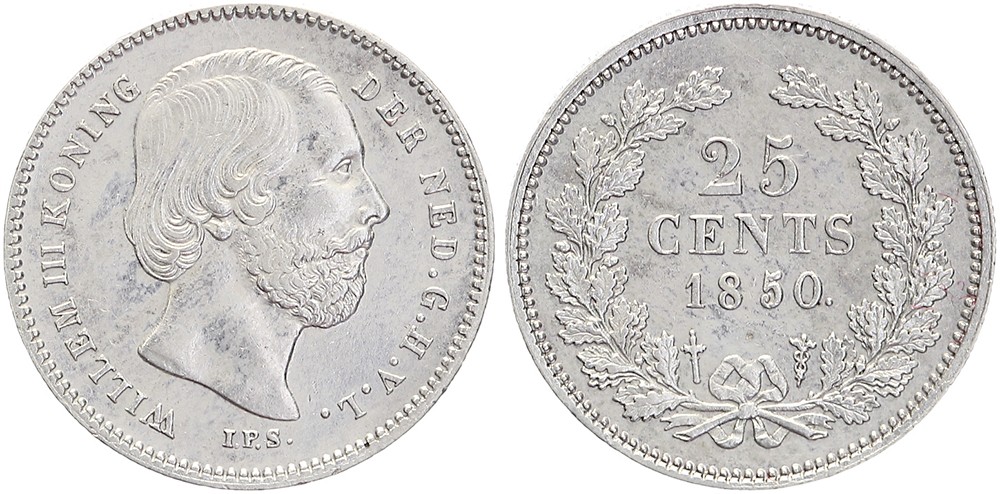 25 Cents 1850 mmt. zwaard Sch. 635 Vrijwel prachtig