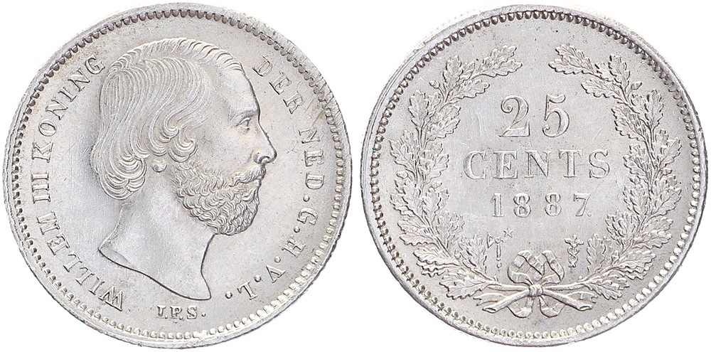 25 Cents 1887 mmt. bijl + ster Sch. 637 Vrijwel FDC