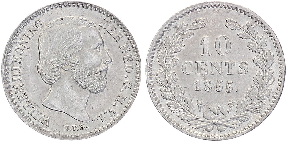 10 Cents 1855 mmt. zwaard Sch. 643 Prachtig