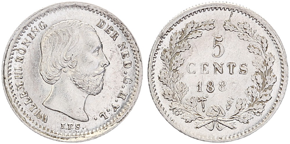 5 Cents 1887 mmt. bijl + ster Sch. 676 Prachtig / FDC