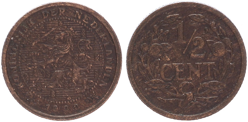 ½ Cent 1922 uit 1921 mmt. zeepaardje Sch. 1014 var. Zeer fraai