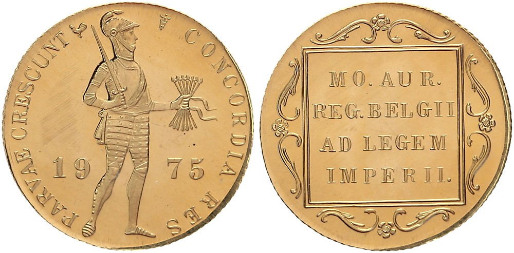 Gouden dukaat 1975 mmt. haan Sch. 1081 FDC