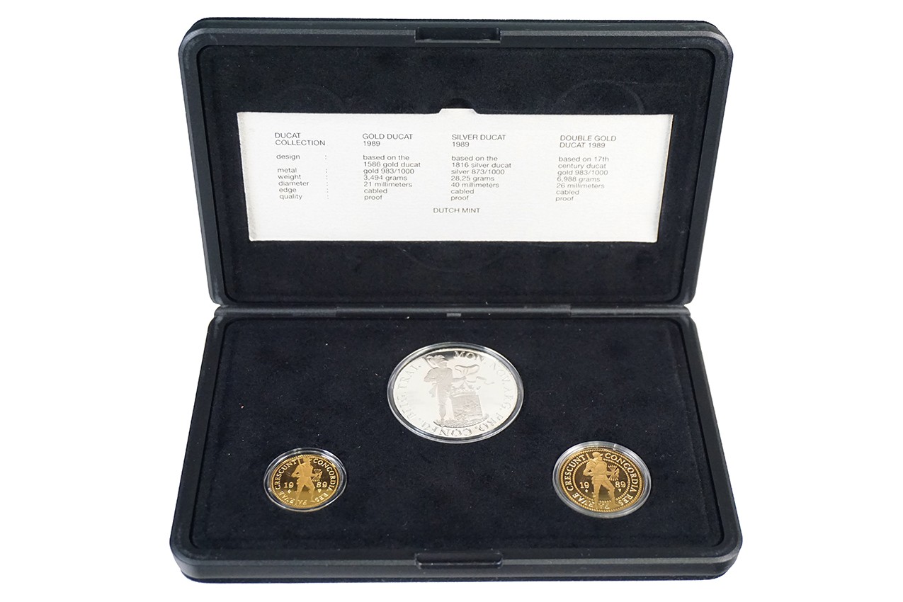 Dukatenset 1989, enkele en dubbele dukaat goud alsmede zilveren dukaat. Proof in cassette