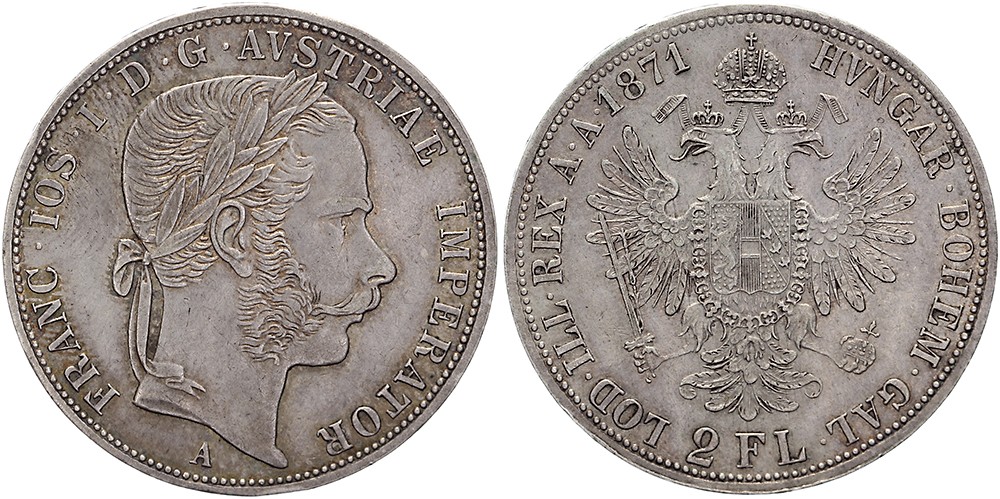Doppelgulden 1871A. Dav. 25A; KM 2232. Gutes sehr schön.