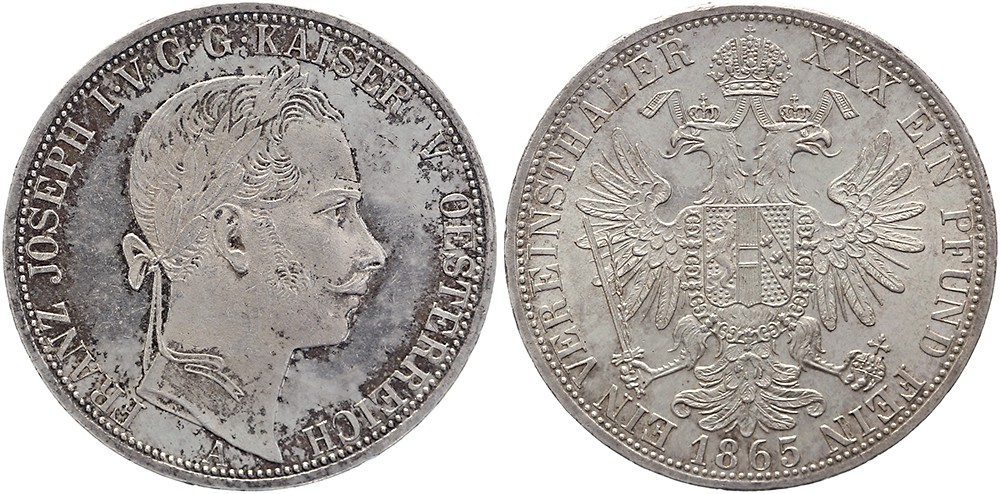 Taler 1865A. Dav. 21; KM 2244. Fast Stempelglanz.