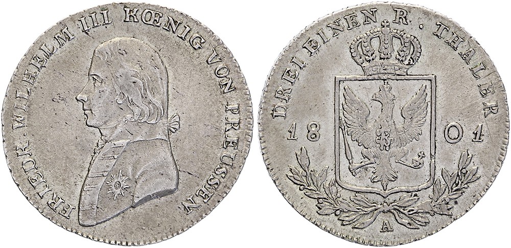 1/3 Taler 1801A (Brandenburg). Schön 174; KM 380. Fast vorzüglich.