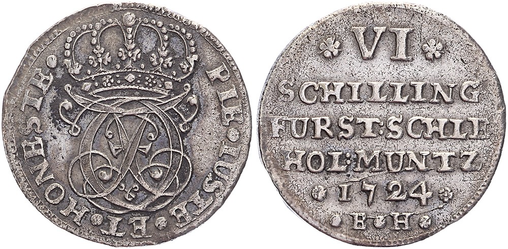 VI Schilling 1724. Schön 34; KM 218. Sehr schön.