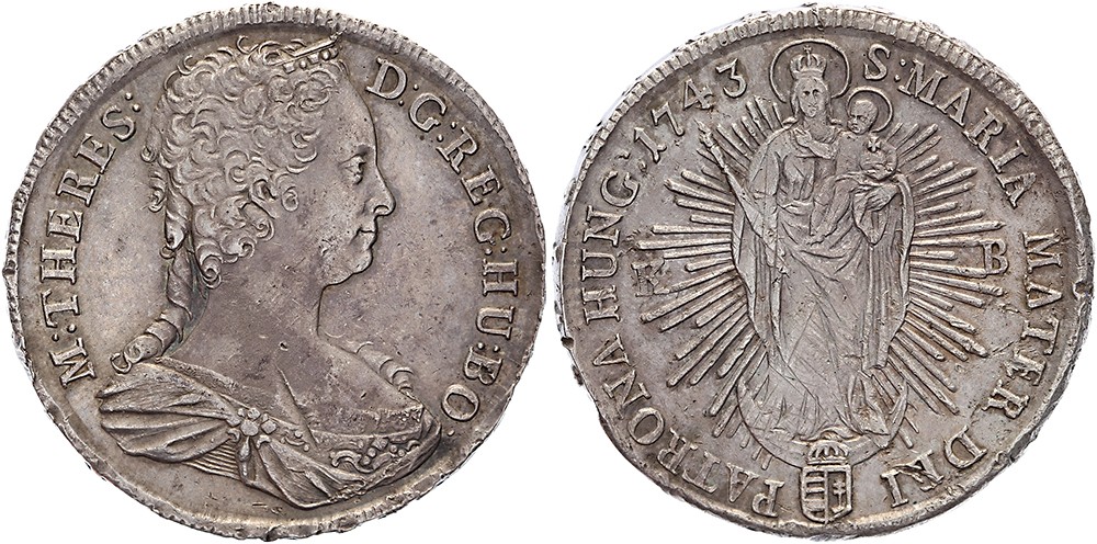 Taler 1743KB. With: M: THERES: D:G: REG: HU: BO Dav. 1126; KM 328.4.Some edge irregularities. VF.