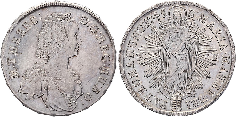 Taler 1745KB. With: M: THERES• D:G: REG: HU: BO: Dav. 1128; KM 337.1Scratches obverse, nevertheless near EF.