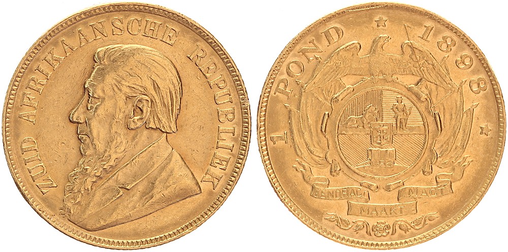 1 Pound 1898 Paul Kruger. Fr. 2; KM 10.2. VF / EF.