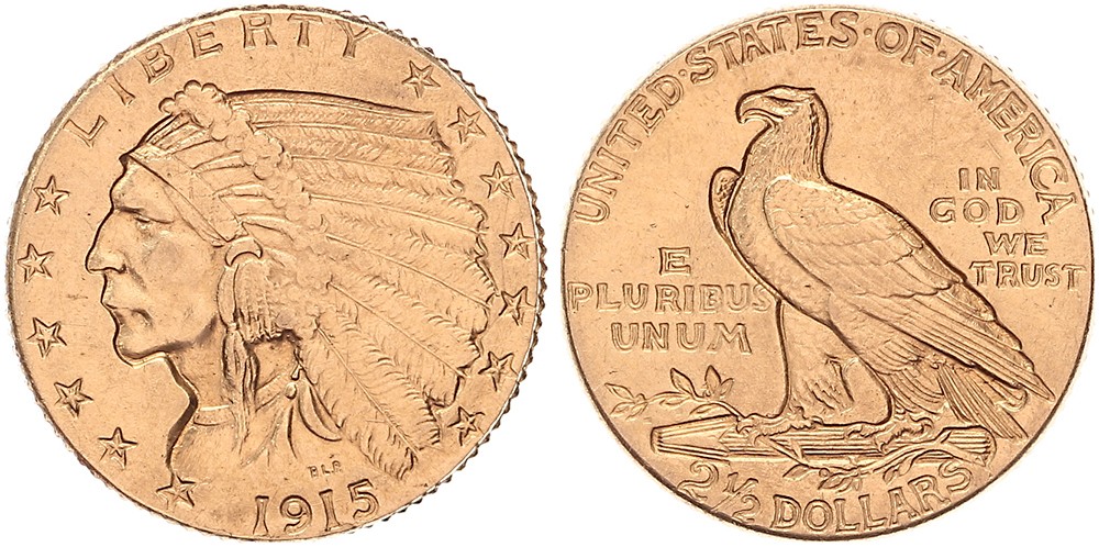 2½ Dollars 1915 Indian Head. Fr. 120; KM 128. EF.