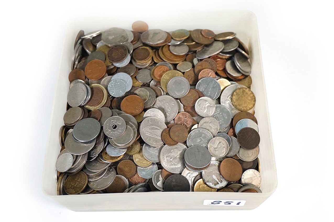 Vierkante plastic box met 7 kg. eenvoudige wereldmunten, kilowaar.