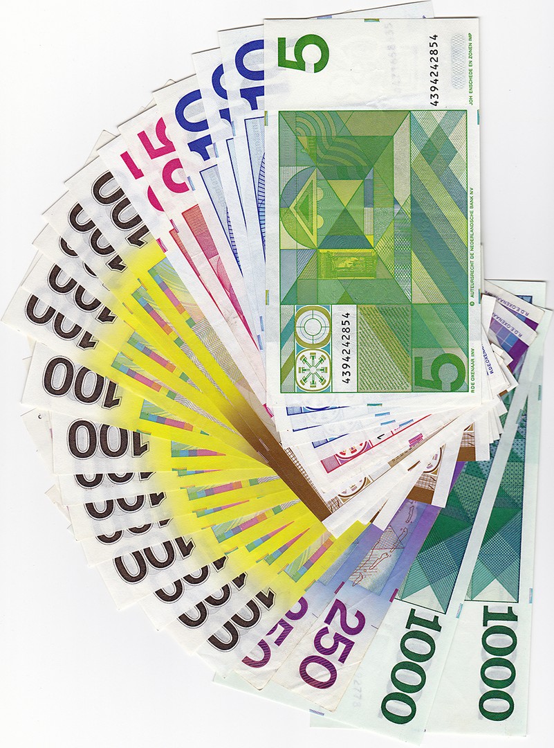 Lot (24) Modern bankpapier Nederland. Nlg. 1000,- Spinoza (2); Nlg. 250,- Vuurtoren (2); Nlg. 100,- Snip (14); Nlg. 25,- Sweelinck (2); Nlg. 10,- Frans Hals (3); Nlg. 5,- Vondel 1973 (1). Totaal nominaal Nlg. 3985,-. UNC en minder.